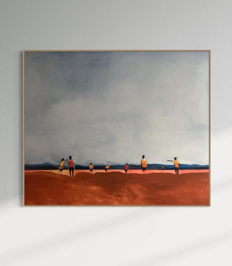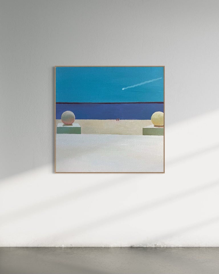 The series “The Picturesque Reality” blends abstraction and figurative art, reflecting the artist’s travels and thoughts. On the canvas, shades and characters exist between memory and imagination. These paintings form a collage of emotions and moods, where light and color interact with solitary figures